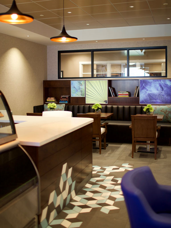 The new owners wanted to create visual interest on the back wall of the bistro, a former coffee shop located within Donway Place Retirement Residence. They envisioned side-by-side graphic panels as part of the redesign that would be lighted to appear 3D, but not be overpowering.